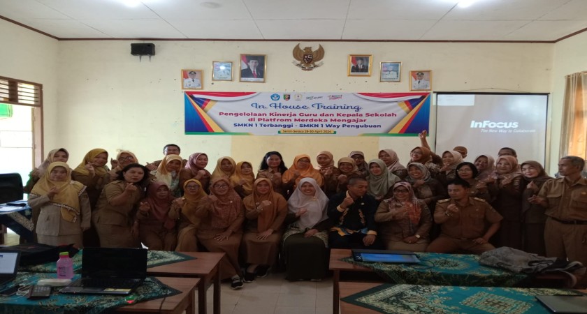 SMK Negeri 1 Terbanggi Besar mengadakan In House Training (IHT) Pengelolaan Kinerja Guru dan Kepala Sekolah di Platform Merdeka Mengajar di aula sekolah, Senin, 29/4/2024.